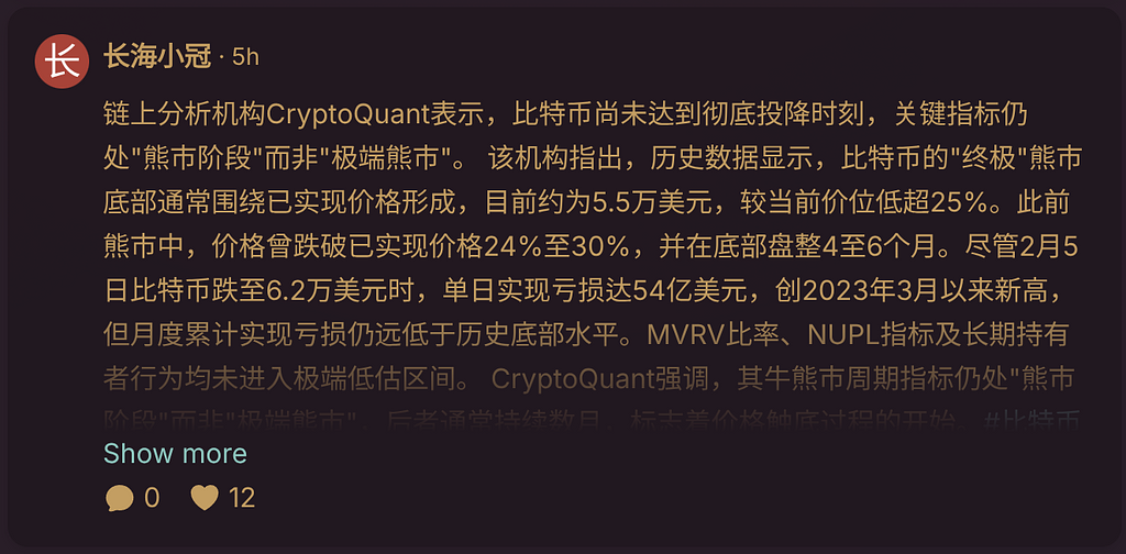 贝森特周五在接受 CNBC 采访时表示,由于加密行业高管的担忧,《CLARITY 法案》的推进受阻对行业产生了负面影响。他表示:「在我们正经历这种历史性抛售的时期,我认为如果在《CLARITY 法案》上能够明确方向,将给市场带来极大的信心,我们就能在此基础上向前迈进。」