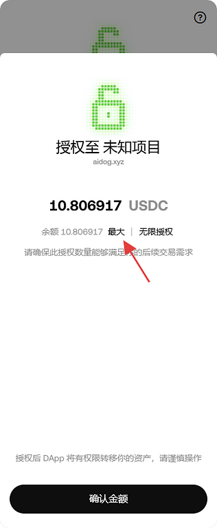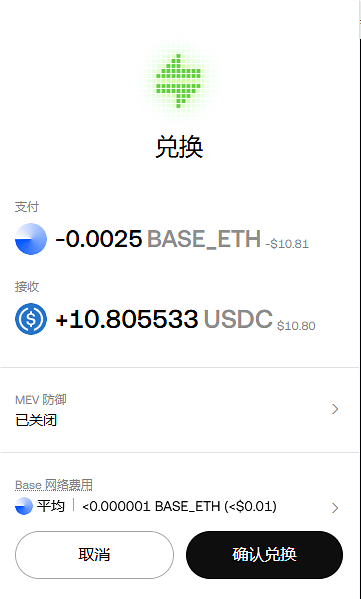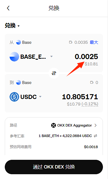 输入大约10个USDC的ETH。