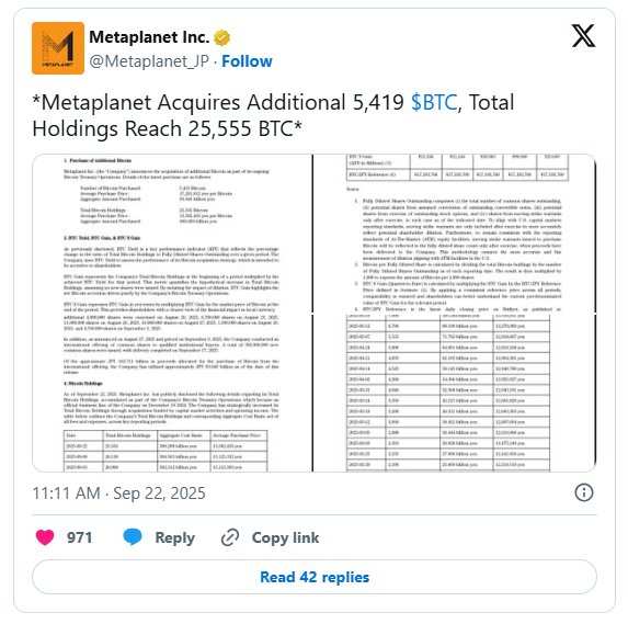 此次购币资金来源于一项14.5亿美元的国际股票发行。Metaplanet不断增长的比特币储备,也重塑了全球企业比特币持有者的排名格局。