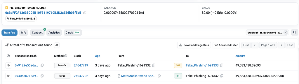 被钓鱼巨鲸/机构地址:0xcB80784ef74C98A89b6Ab8D96ebE890859600819 钓鱼者地址:0xBaFF2F13638C04B10F8119760B2D2aE86b08f8b5