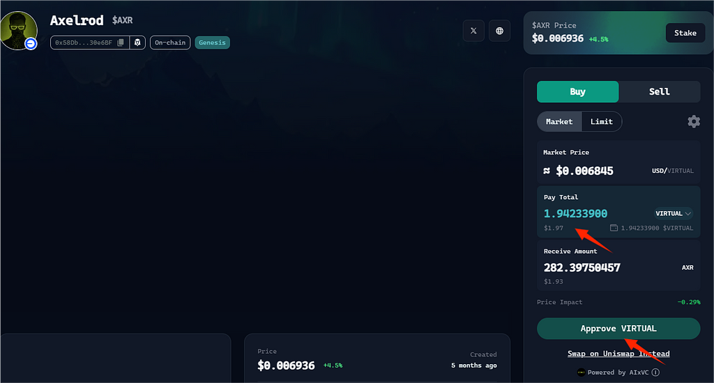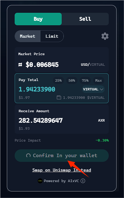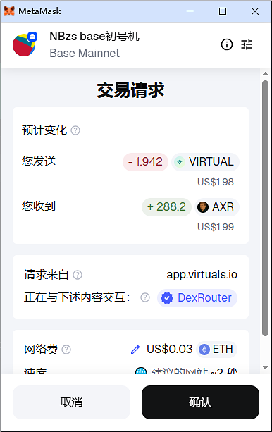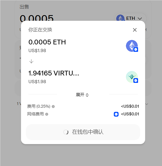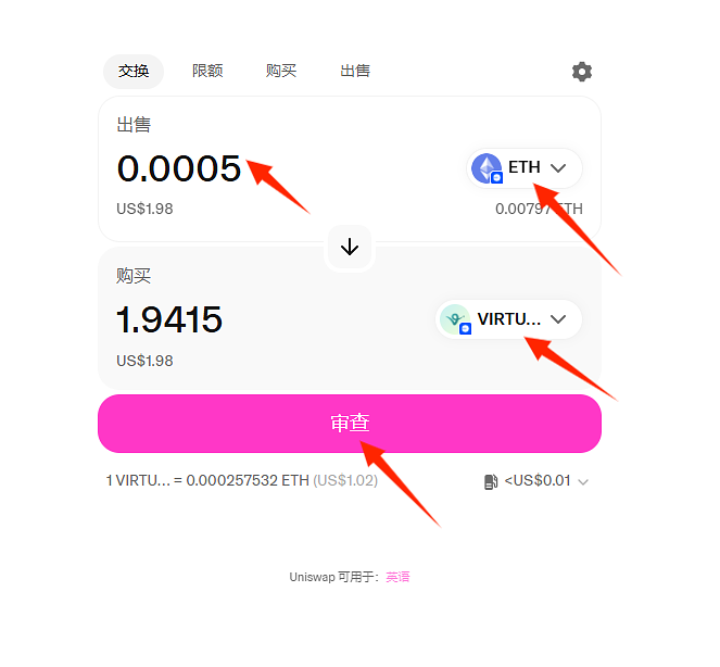 我们没有VIRTUAL代币,去Uniswap兑换。