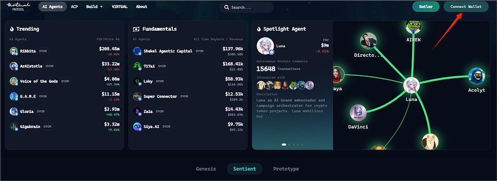Virtuals是一个将AI代理(AI Agent)与区块链和WEB3经济融合的项目,他建立在Base链上的去中心化基础设施。为了让AI代理可以在链上自主运行,决策,提供服务,产生收益。这个生态里面AI被代币化,允许用户持有并在产生的收益中获得分成。而Virtuals作为平台本身有他自己的AI框架为GAME 框架 / ACP(Agent Commerce Protocol),给代理提供决策能力、环境交互、任务规划、代理对代理交易标准等。