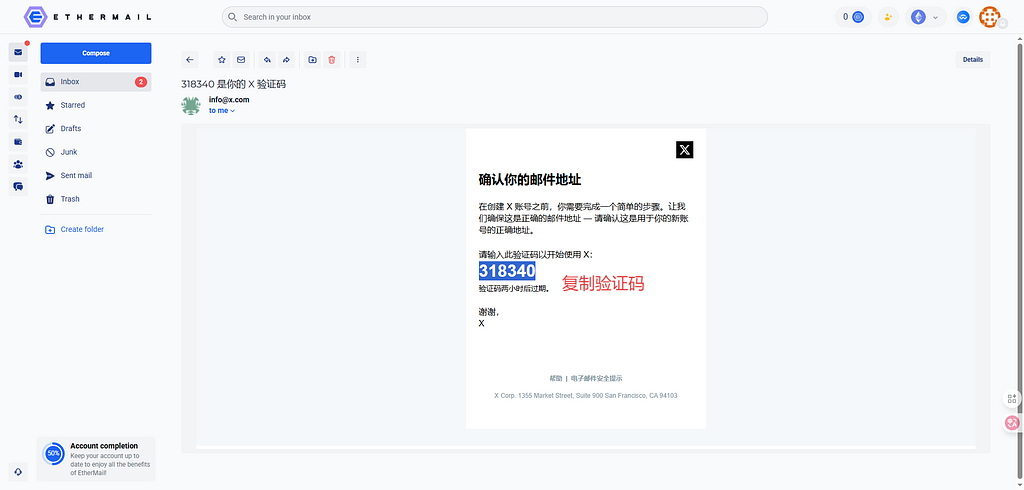 从邮箱中点击。