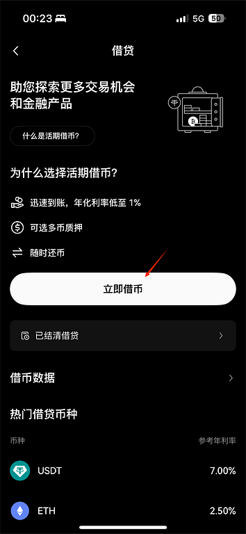 借贷套利的玩法就是从一个低利率的资产中借入,立刻再一个利率高的资产中借出赚取中级利差。我们只体验借贷不存在套利。