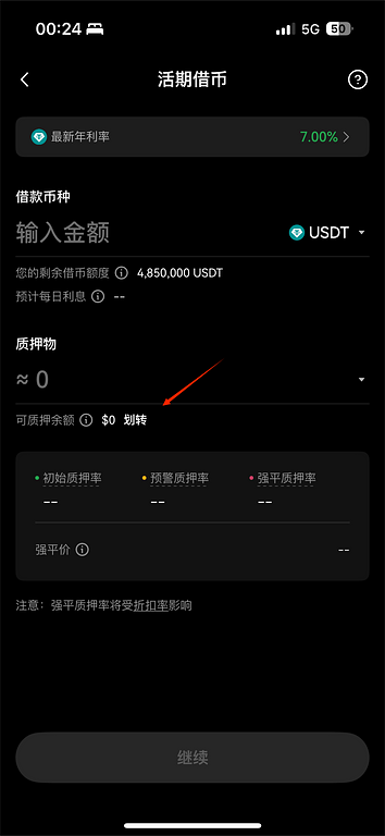 借贷需要抵押物,资金账户没有资产时需要转入。