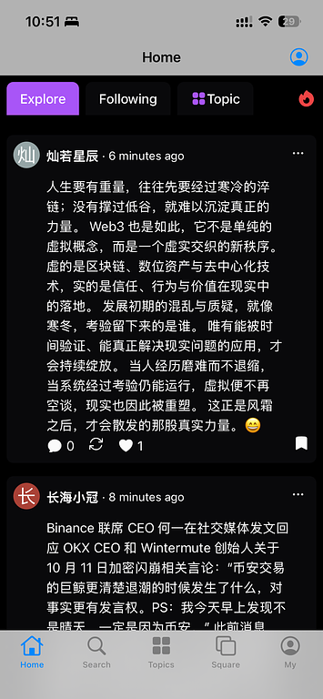 59+ 个页面完成主题适配,从登录注册到个人中心,从话题广场到排行榜,处处一致的视觉体验。