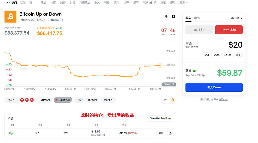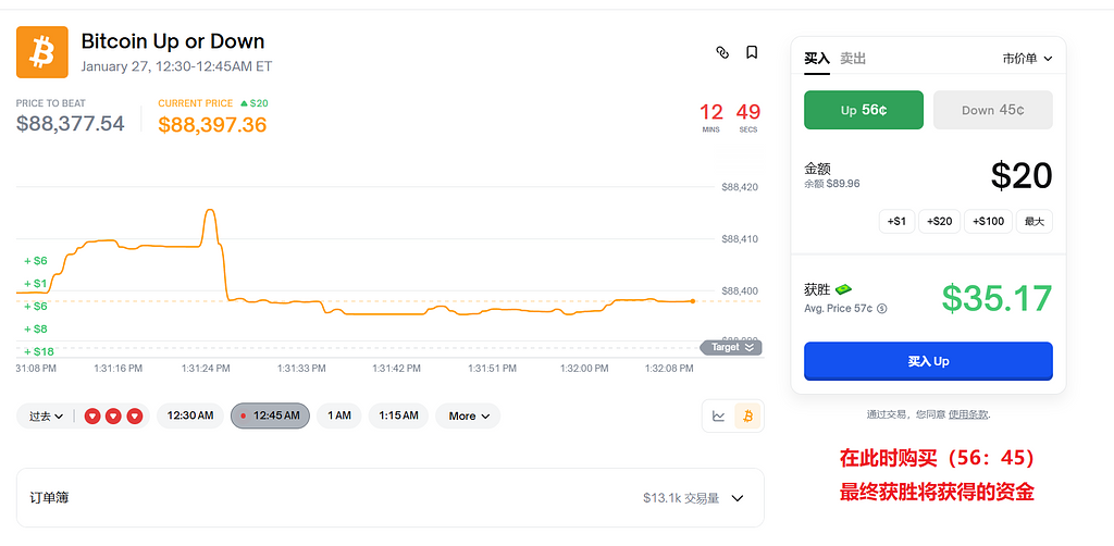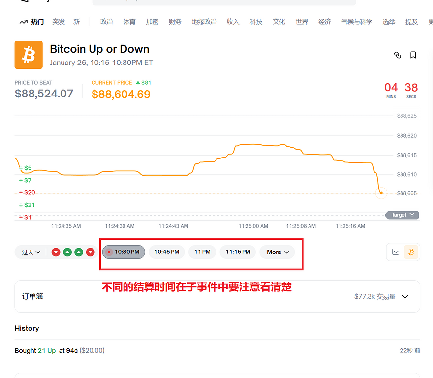那么举例进行开单,以BTC 15分钟涨跌为例。