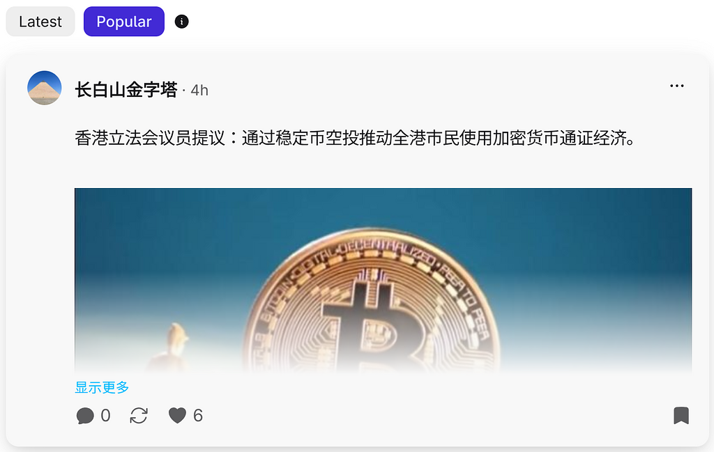 熱度排序上線。 話題列表、代幣頁和搜尋結果現在支援按熱度排序,最活躍的內容一目了然,不再只能按時間翻頁。